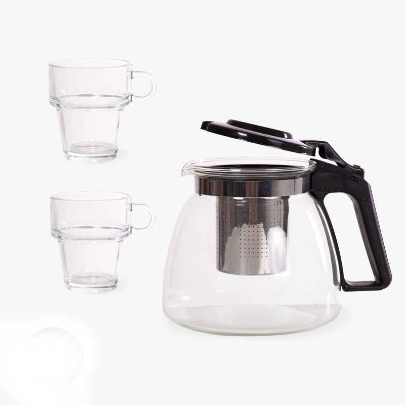 Théière 3 pièces de 900 ml et 2 tasses en verre de 270 ml