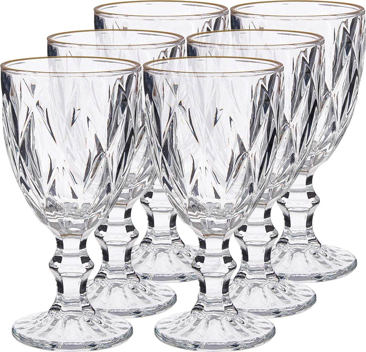 6x - verres à pied en cristal - contour doré - 254 ml
