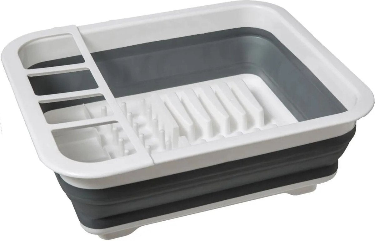 Afdruiprek/afwasrek opvouwbaar wit/grijs 36,5 x 14 cm van kunststof. Geschikt voor 4 borden, 4 tot 6 glazen/bekers en bestek. Dit afwasrek kunt u invouwen/opvouwen wanneer u deze niet gebruikt, om hiermee ruimte te besparen. Ideaal dus voor in de caravan of een kleine keuken. Afmeting ingevouwen: ca. 36,5 x 31,5 x 5,5 cm. Afmeting uitgevouwen: ca. 36,5 x 31,5 x 14 cm. Materiaal: kunststof.