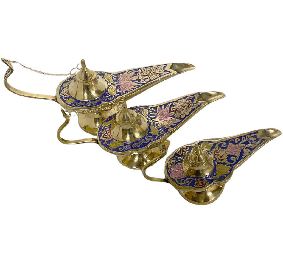 Lampe Aladdin authentique fabriquée à la main de couleur or. Frottez la lampe d'Aladdin et le génie (esprit) pourra en... En savoir plus