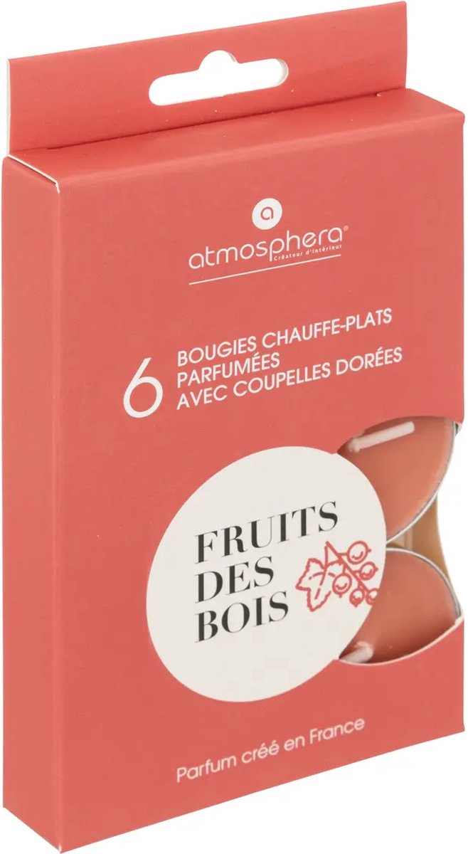 Atmosphera Créateur D'Intérieur - Bougies Chauffe-Plat Parfumées - Bougies Parfumées - Chauffe-Plat - Bougies Chauffe-Plat Parfumées - Scented Tealight Candles - Fruits des bois - Fruits des bois - 1 boîte de 6 chauffe-plats