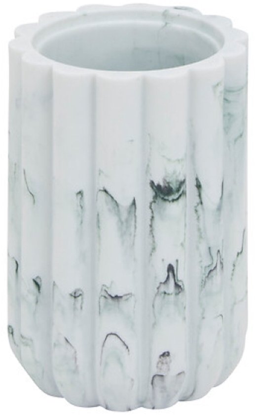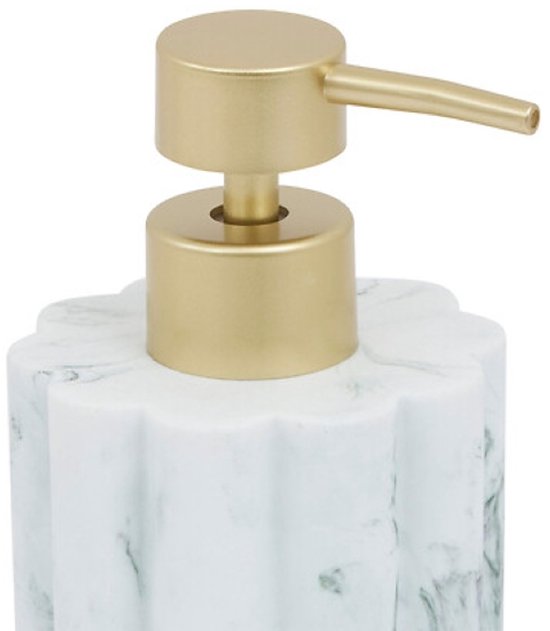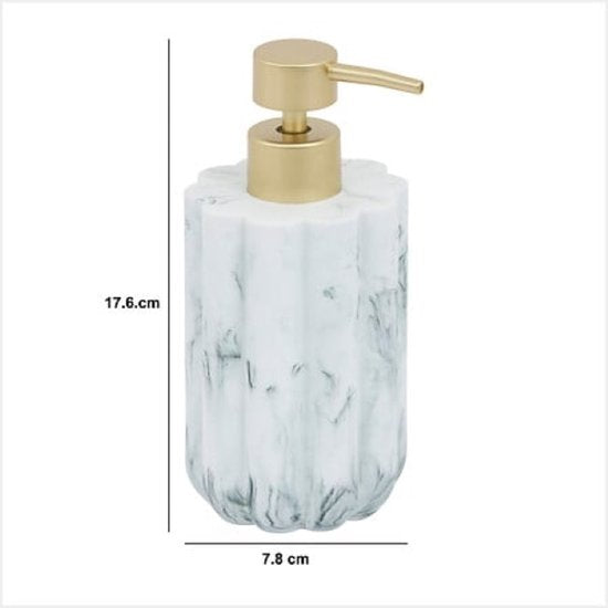 Badkamer Accessoiresset – Moderne Badkamer Accessoires – Zeeppomp 230ml & Toiletborstel Set – Luxe Zeepdispenser & Toiletborstel met Houder – Polyresin – Wit Marmer