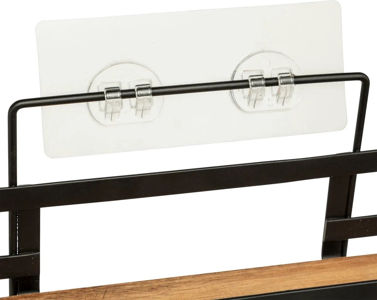 Badkamer douche rekje organizer - zwart metaal/acacia hout - zuignappen - 25 x 15 x 30 cm