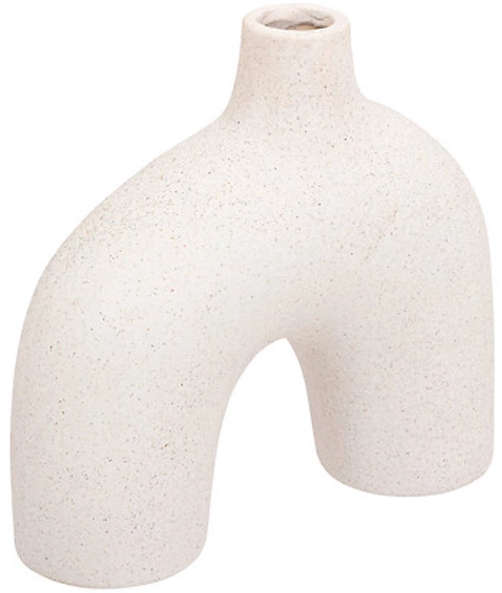 Design Vaas van Wit Zandkeramiek – Asymmetrisch | Hoogte 18 cm | Scandinavische Stijl | Decoratieve Interieurvaas