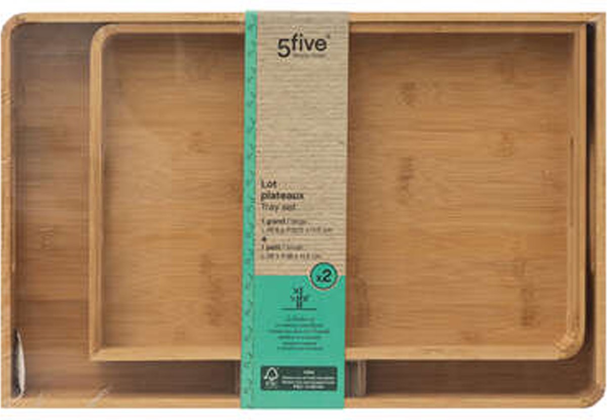 Dienbladen set van 2x stuks met opstaande rand - bamboe hout - 46 x 30 cm/38 x 26 cm