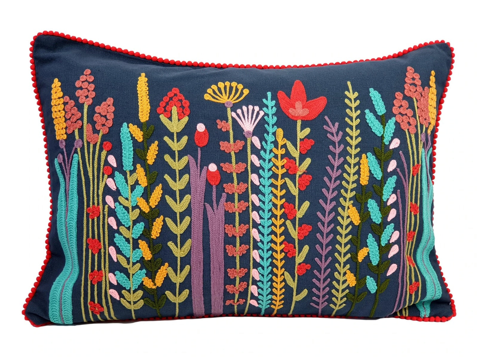 Housse de coussin brodée de fleurs sauvages35x50cm
