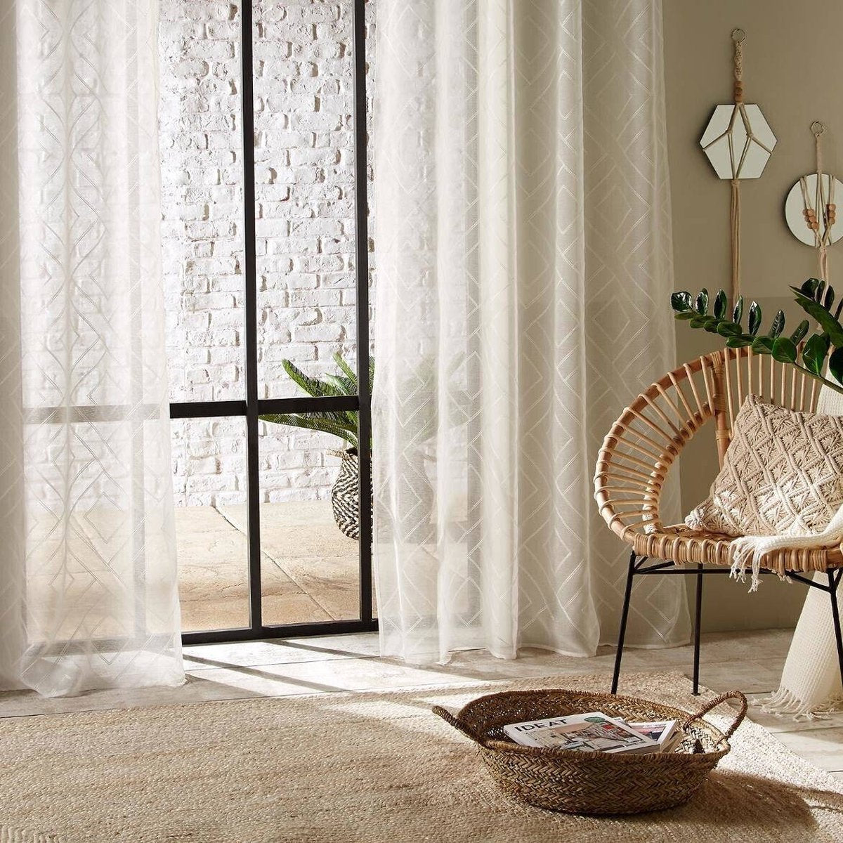 - beau rideau de fenêtre à motif géométrique,