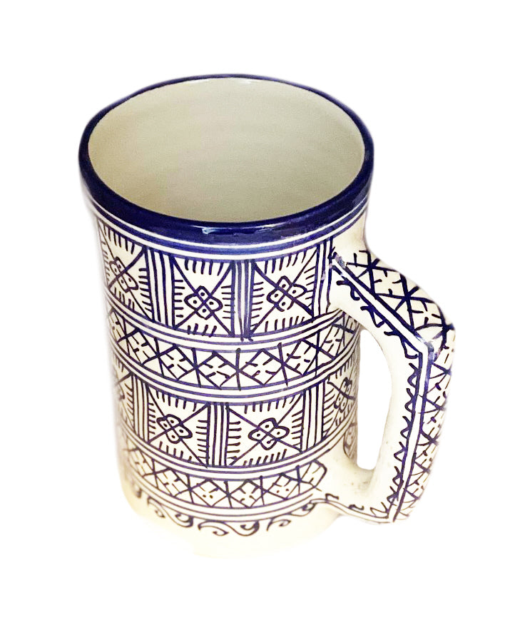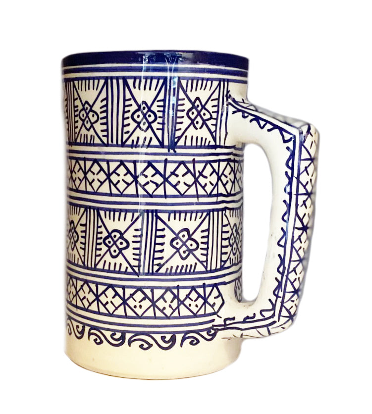 Carafe marocaine authentique en poterie peinte à la main. Dimensions : D 11 / 19 x H cm En savoir plus