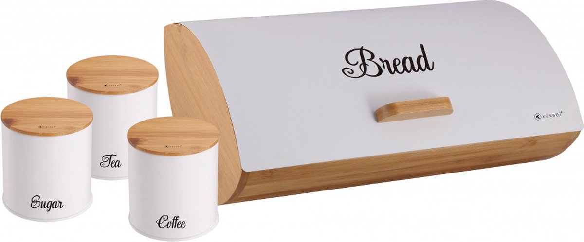 Kassel 93515 - Boîte à pain avec 3 boîtes de conservation - Blanc - Acier / bambou
