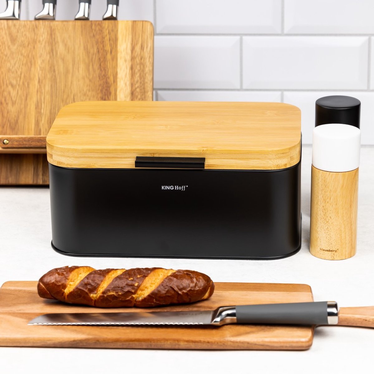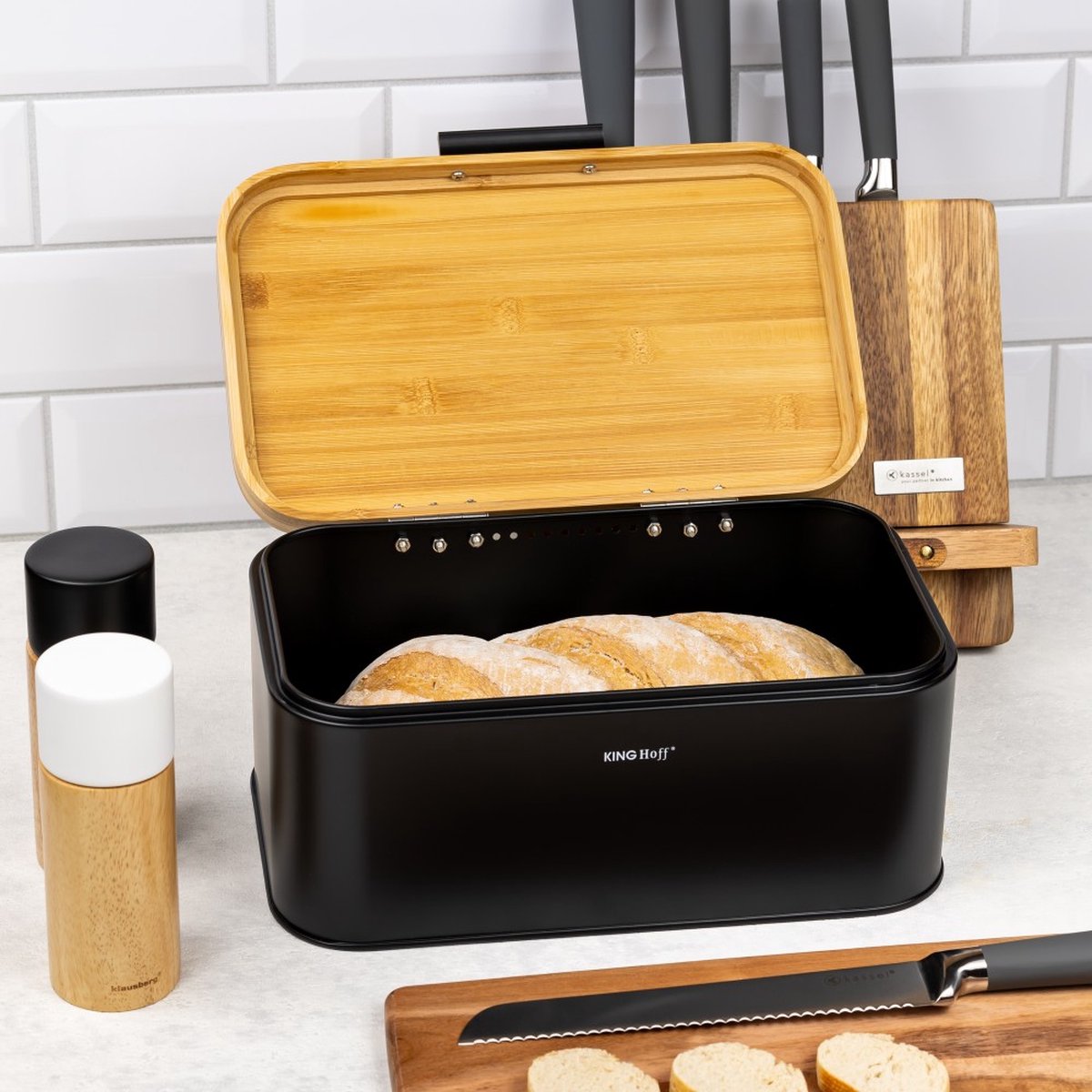 Kinghoff 1735 - Boîte à pain - Bambou - noire - 8,4 litres