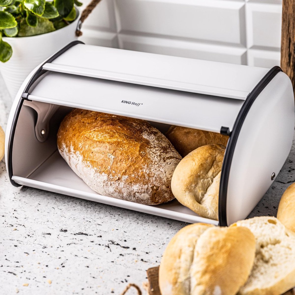 Kinghoff 1864 - Grande boîte à pain - Inox - Blanc - Rétro - 44x27x18,5 cm