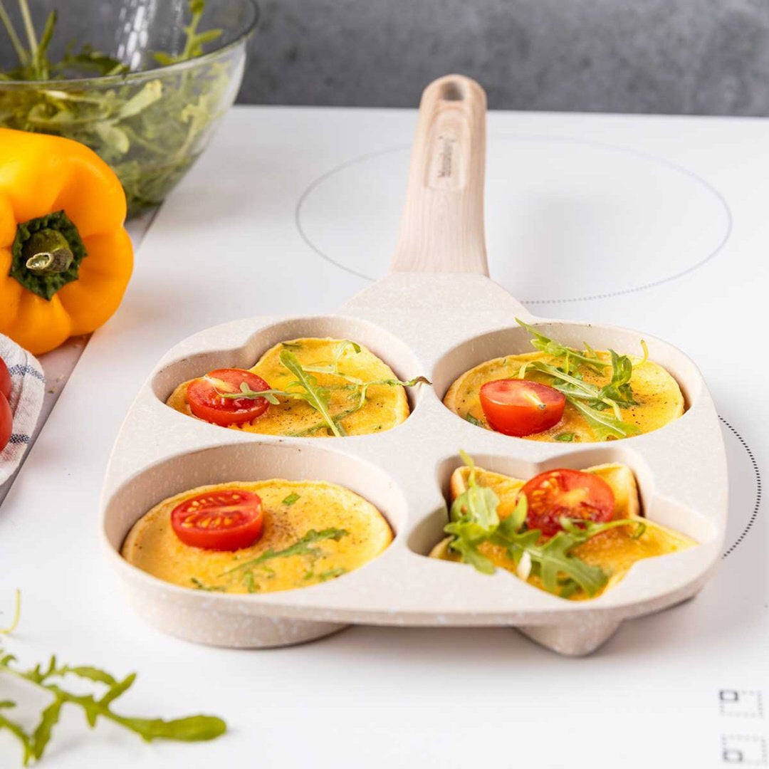 La Poêle à Œufs et Crêpes en Marbre à 4 Sections (Klausberg KB-7809) est une poêle pratique et polyvalente, idéale pour préparer des œufs ou des crêpes de différentes formes. La poêle est dotée de 4 sections aux formes uniques, dont une étoile, un cœur et deux empreintes rondes, ce qui donne à vos plats un aspect ludique et attrayant.
