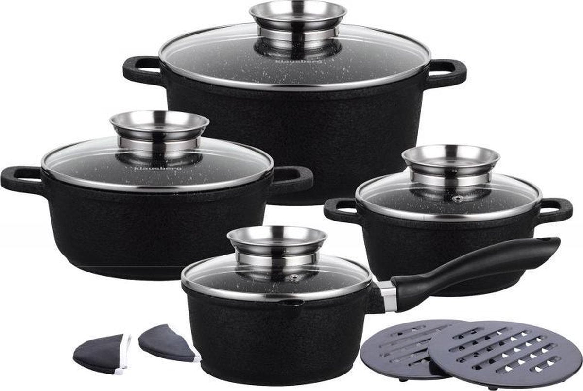 Klausberg - Set de 12 casseroles et poêles - noir - revêtement marbre