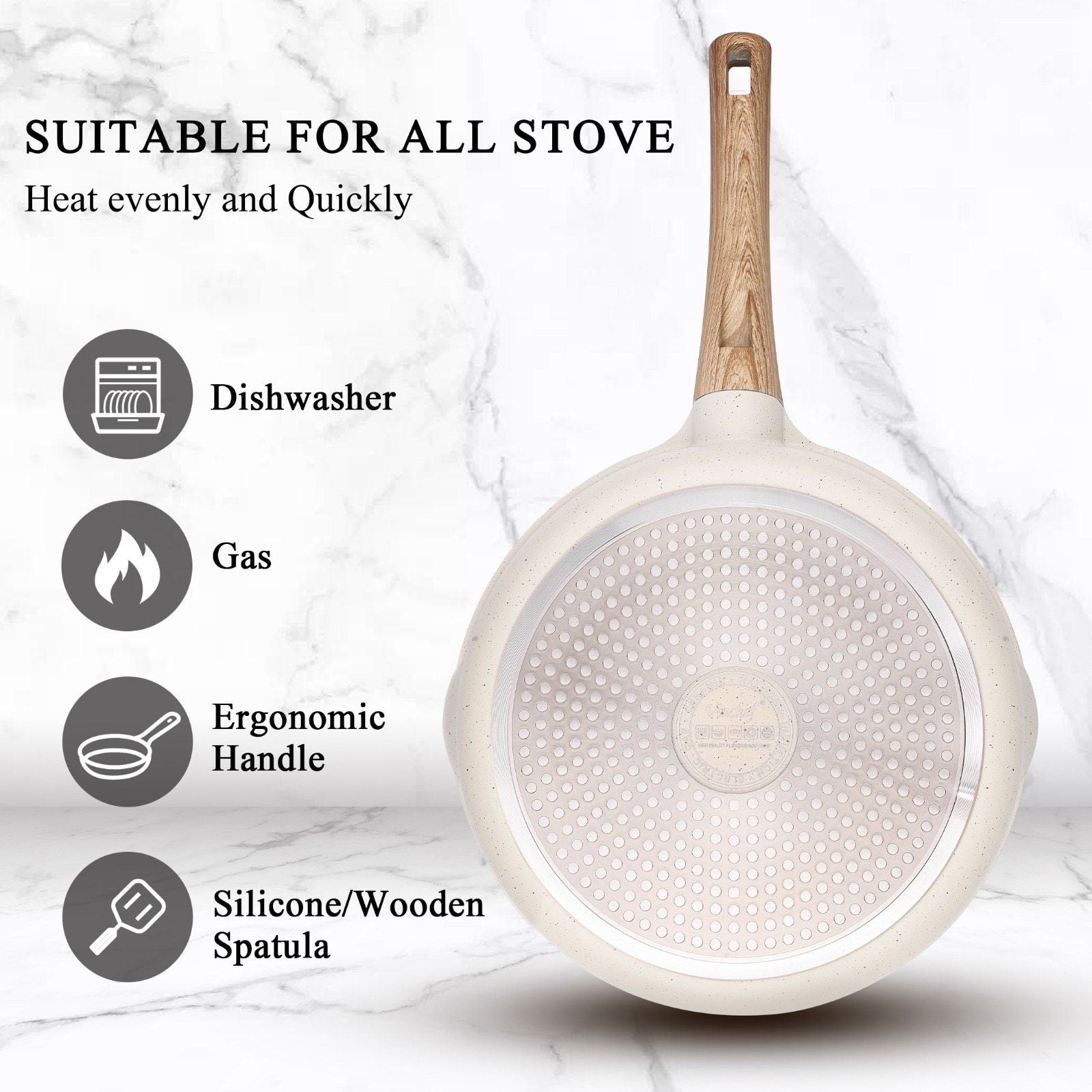 Cette poêle à frire allie style et performance de manière inégalée. Dotée d'un fond épaissi pour une répartition uniforme de la chaleur et d'un revêtement antiadhésif non toxique, cette poêle garantit une cuisson et un nettoyage sans effort. Un mélange parfait de beauté et de fonctionnalité.