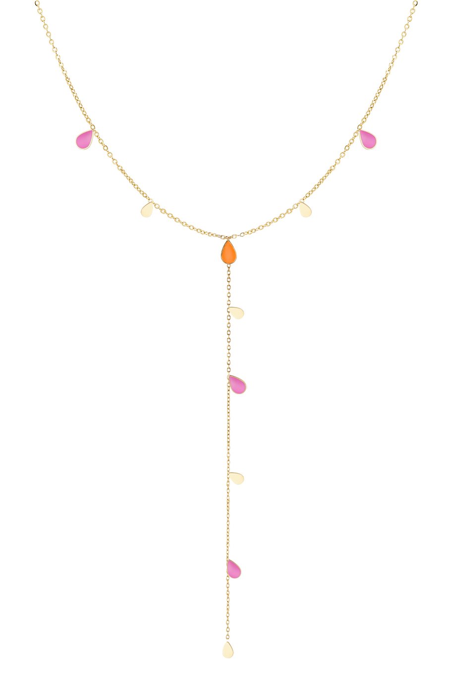 Long collier pendentif émail – Doré avec gouttes orange / rose – 45 cm (+5 cm Ajustable) – Acier inoxydable