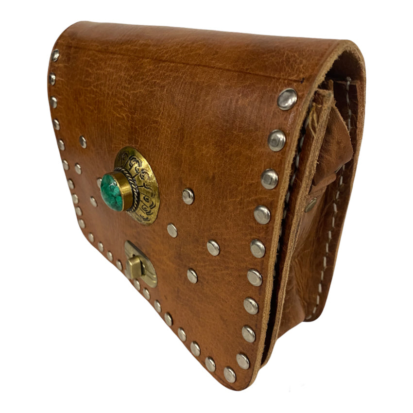 Magnifique sac en cuir marocain fait à la main en cuir cognac / marron-rouge. Entièrement et traditionnellement fabriqué à la... En savoir plus