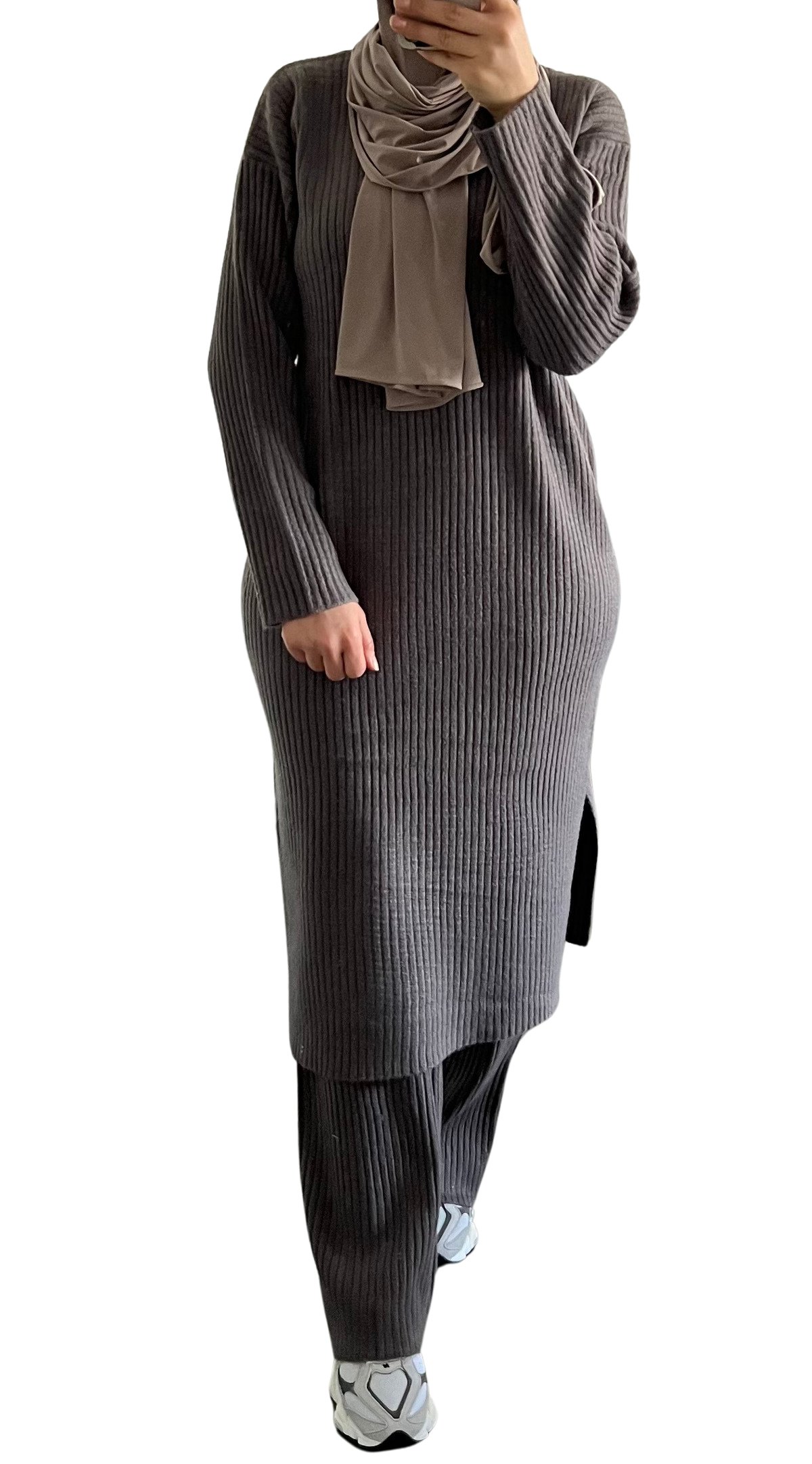 Une robe midi en maille côtelée douce avec un col rond, des manches longues et une jupe droite avec des... En savoir plus