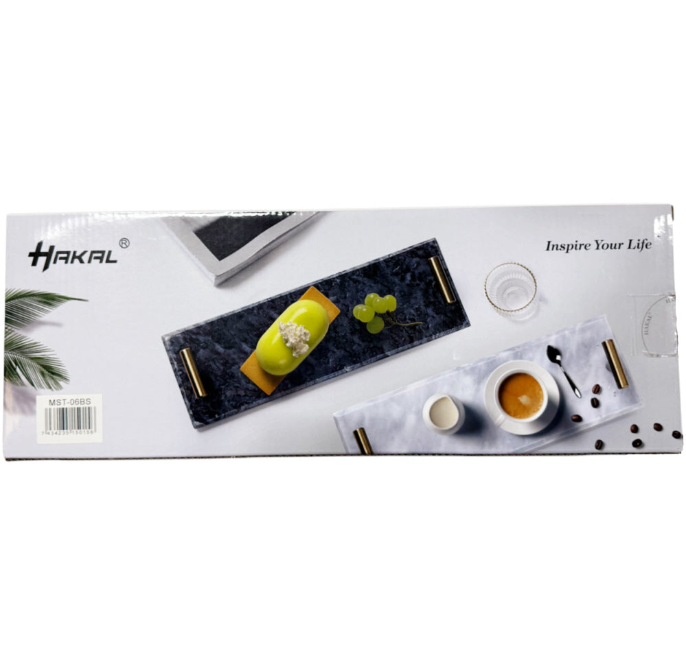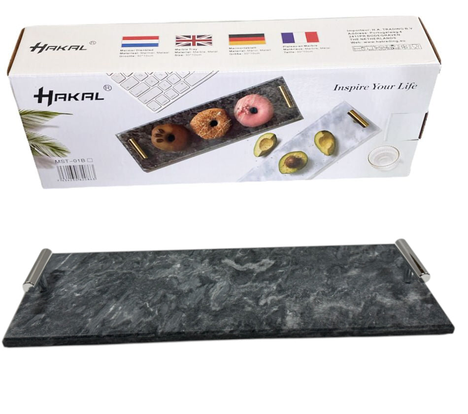 Plateau en marbre avec poignées argentées 30 x 10 cm noir