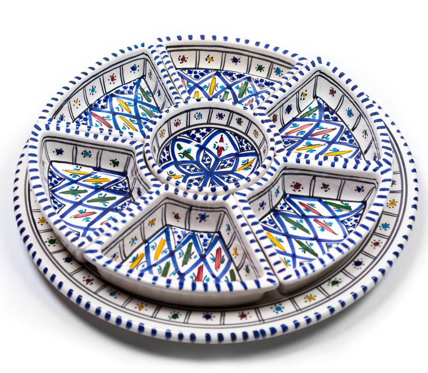 Service et plats à trempette ronds marocains 8 pièces faits à la main