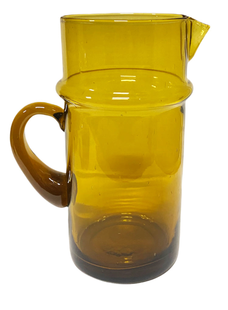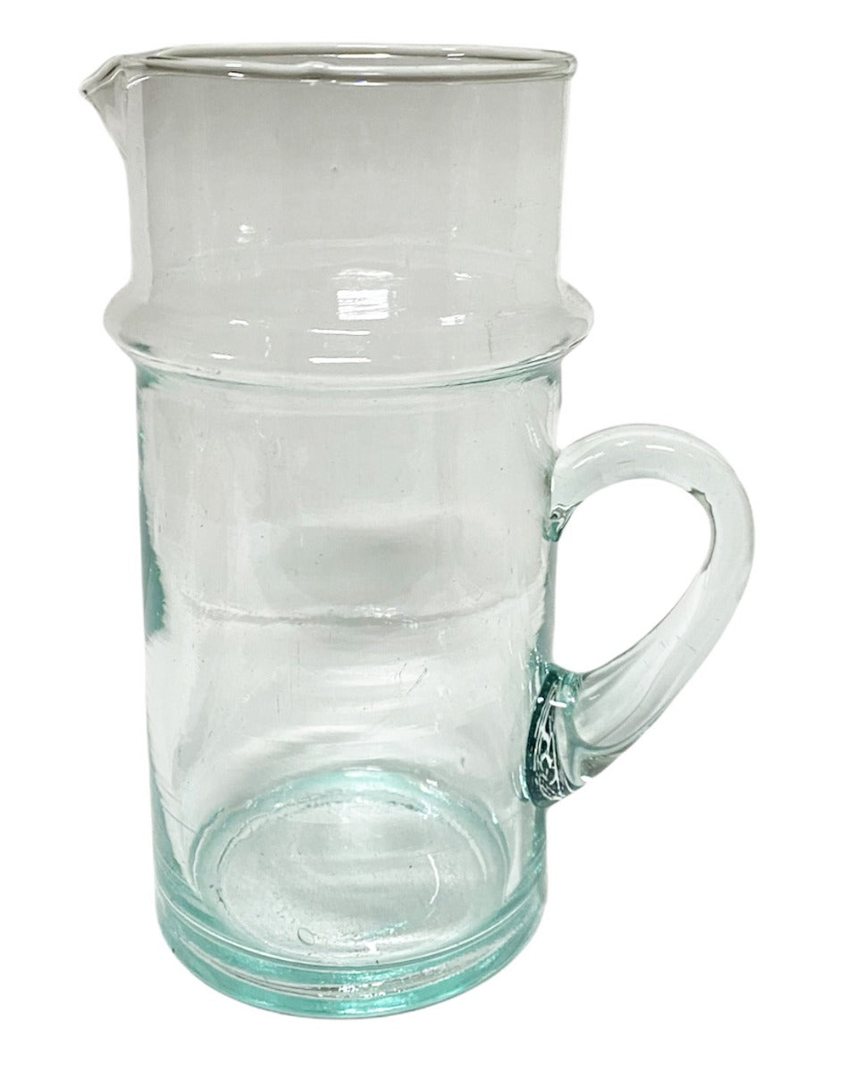 Carafe marocaine avec anse disponible en différentes couleurs. La carafe marocaine Beldi, traditionnelle et fabriquée à la main, est fabriquée à partir de verre recyclé par des artisans qualifiés au Maroc. Cette carafe est un accessoire magnifique qui complétera parfaitement votre table dressée.