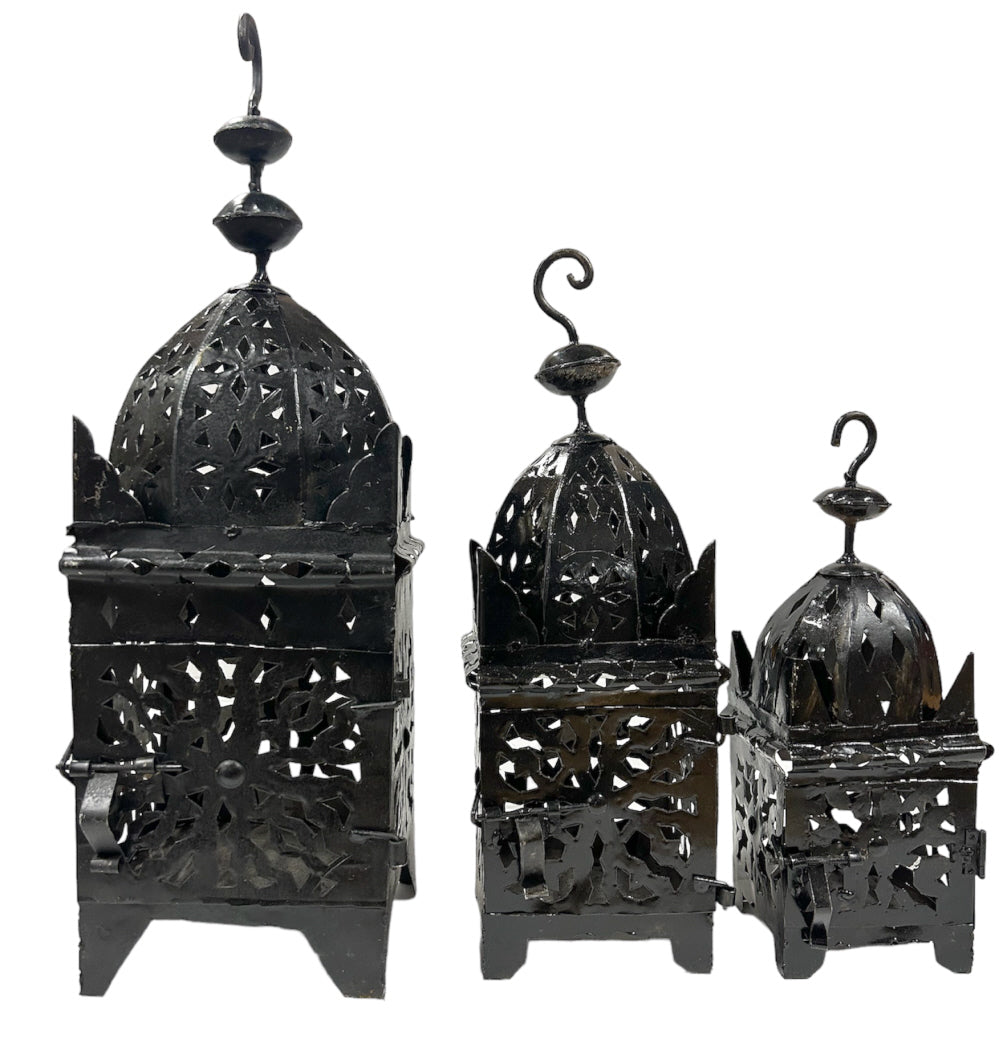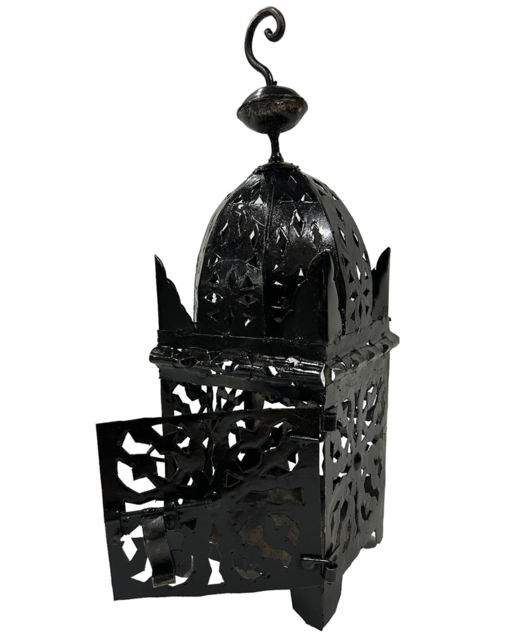Lanterne marocaine fabriquée à la main avec un design traditionnel, de couleur noire à l'extérieur et à l'intérieur. Le design... En savoir plus