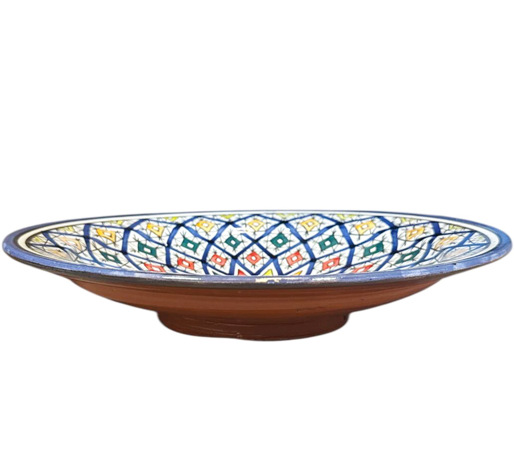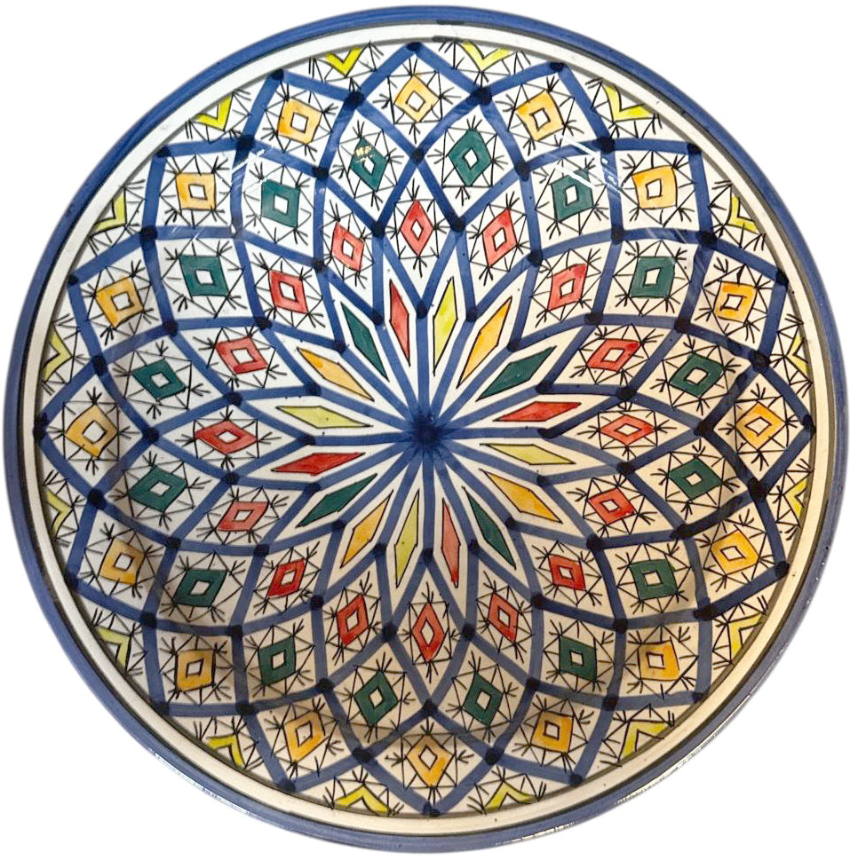 Plat marocain Ø35 cm – Fait main et motif mosaïque coloré – Style Fès
