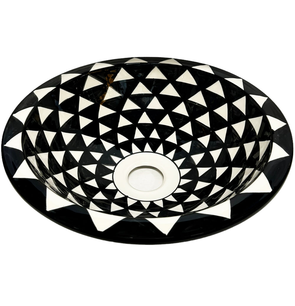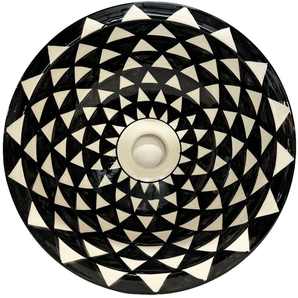 Vasque marocaine FEZ - peinte à la main noir et blanc