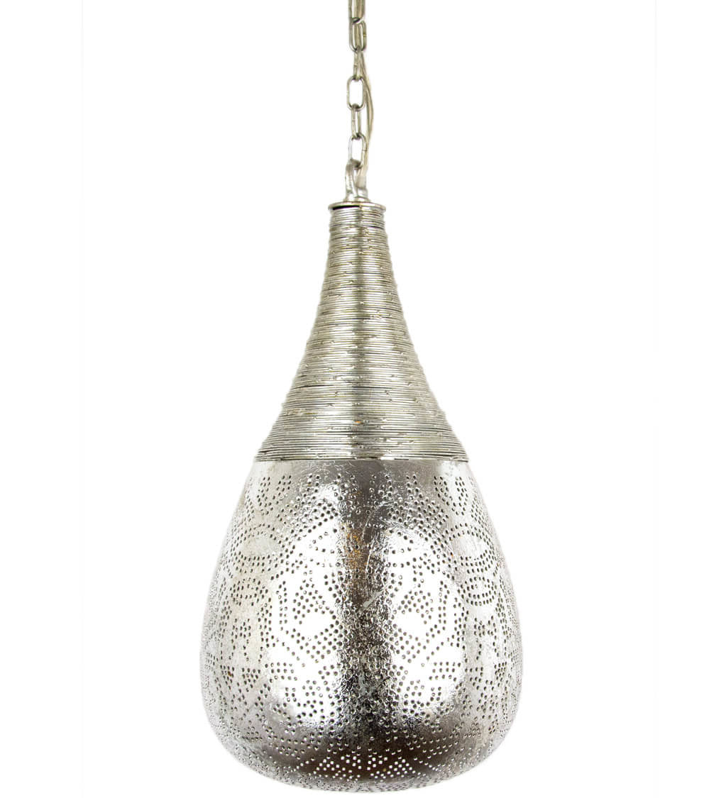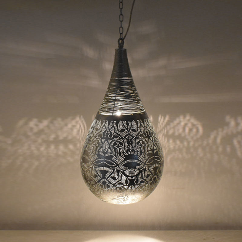 Suspension orientale en filigrane, design goutte et fil, argent vintage