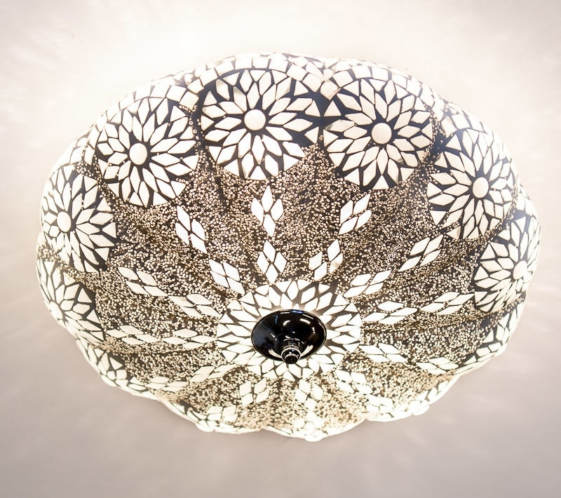 Plafonnier mosaïque oriental fait à la main et unique avec verre transparent. • mosaïque : transparent• nouveau design + perles•... En savoir plus