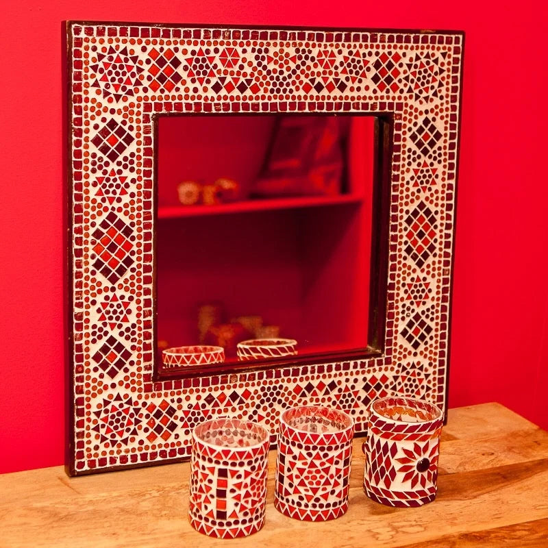 Un magnifique miroir oriental avec un cadre carré en mosaïque, fait à la main en verre mosaïque dans les couleurs... En savoir plus