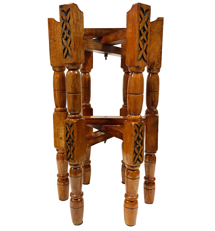Magnifique table d'appoint marocaine fabriquée à la main, composée d'un support en bois pliable et d'un plateau en laiton. Le plateau en laiton peut être retiré et utilisé comme plateau de service. Le support en bois pliable le rend infiniment polyvalent et ultra-portable.