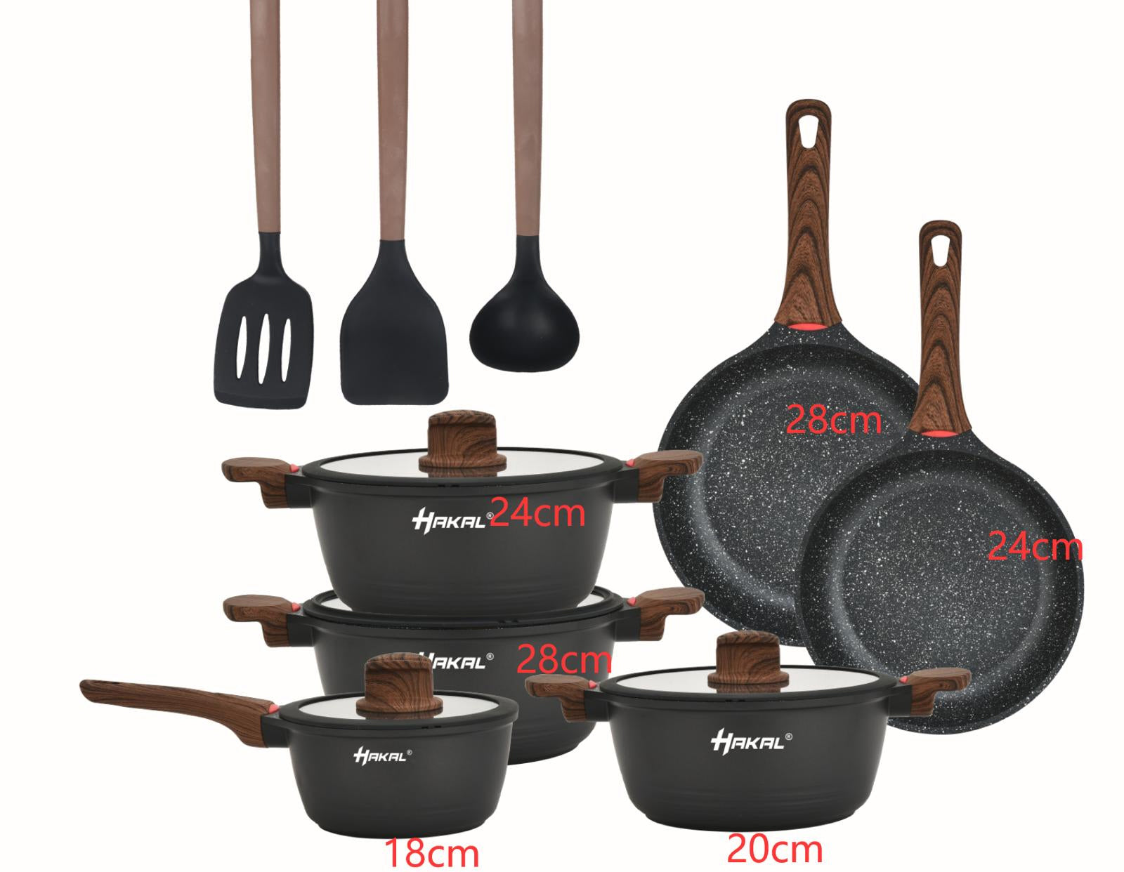 La batterie de cuisine Hakal complète est le choix parfait pour tous ceux qui veulent cuisiner sainement et bien. Ces casseroles, dotées d'un revêtement en marbre de haute qualité, conviennent à toutes les sources de chaleur, y compris l'induction et le four. Bref, une batterie de cuisine incontournable dans votre cuisine !