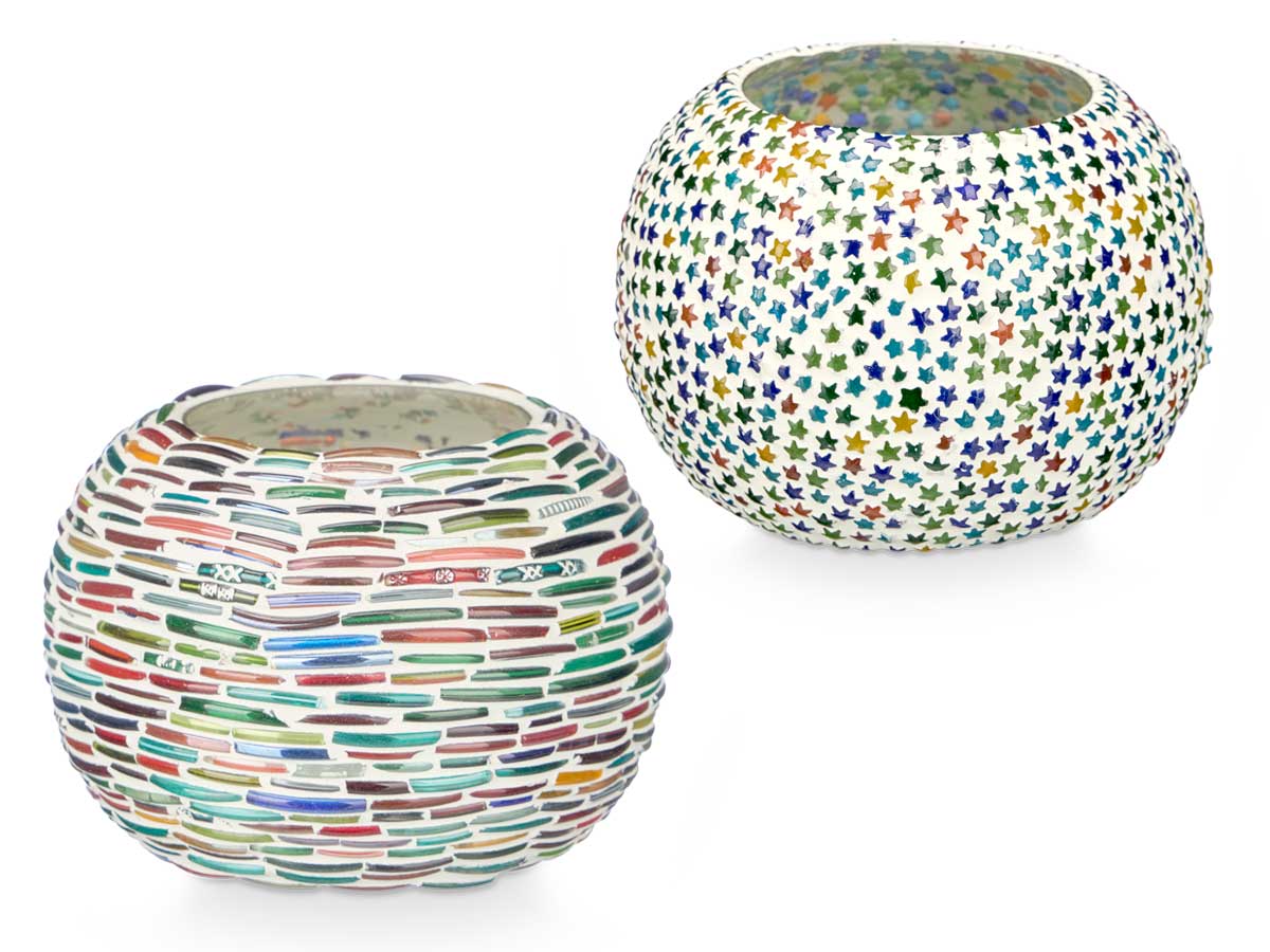 Lot de 2 photophores ovales - Motif rayures et étoiles (12,5 x 12,5 x 8 cm)