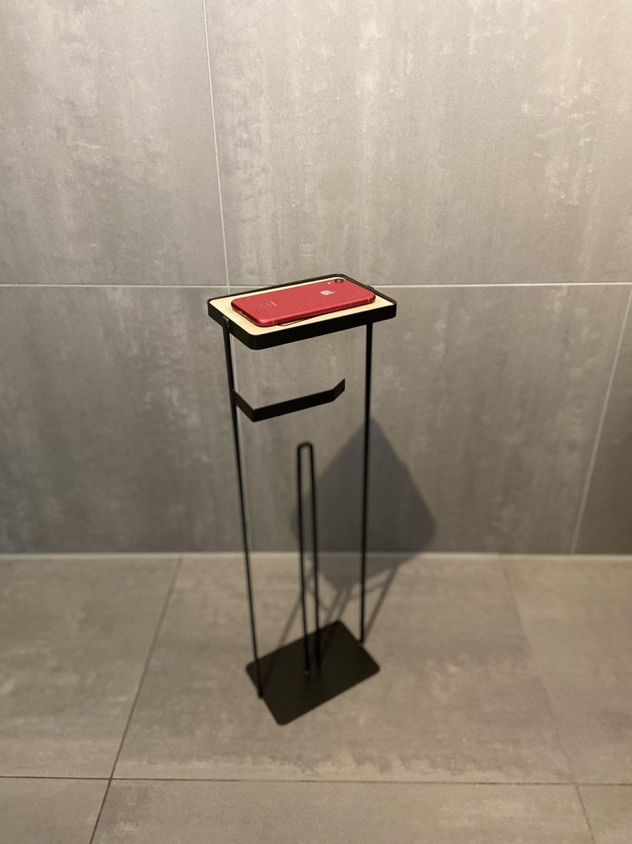Porte-rouleau de papier toilette sur pied avec réservoir et étagère pour téléphone 59 cm