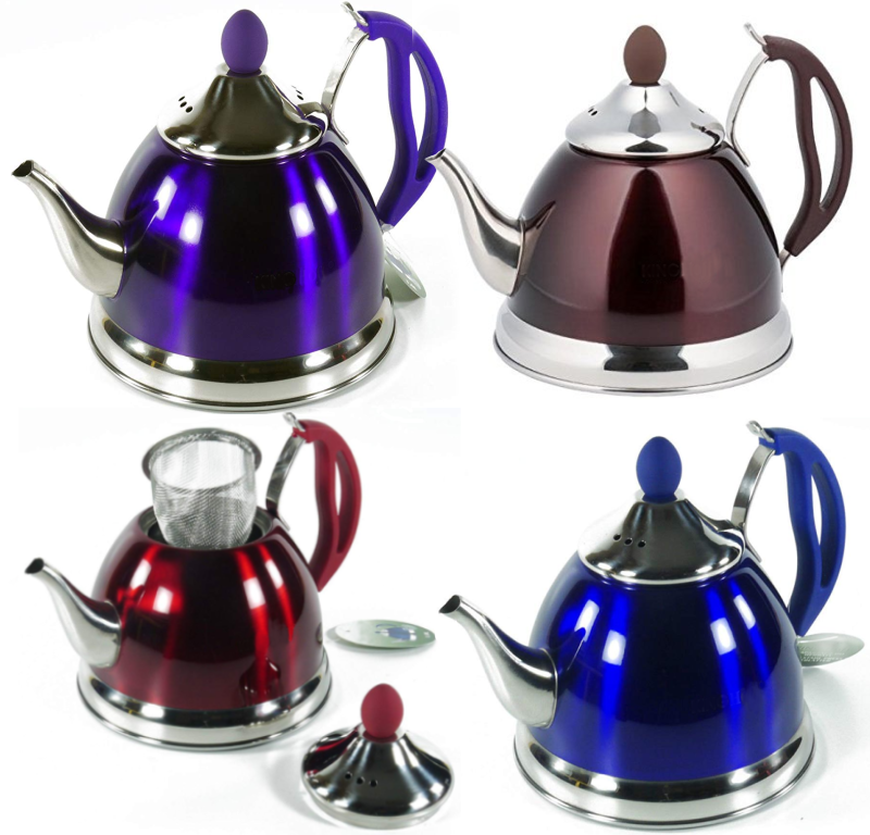 Théière tendance disponible en plusieurs coloris. La théière est livrée avec un filtre pour le thé ou les herbes. Fabriquée en acier inoxydable de haute qualité, elle garantit une longue durée de vie. La théière a une capacité de 1 litre, suffisante pour 5 à 6 tasses de thé.