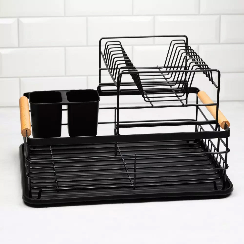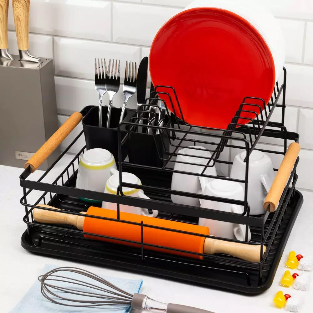 L'égouttoir à vaisselle est doté de poignées en bois pratiques des deux côtés, où vous pouvez également accrocher des torchons de cuisine.
