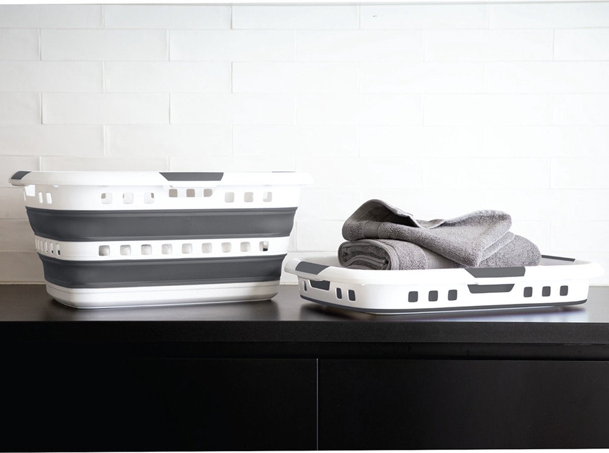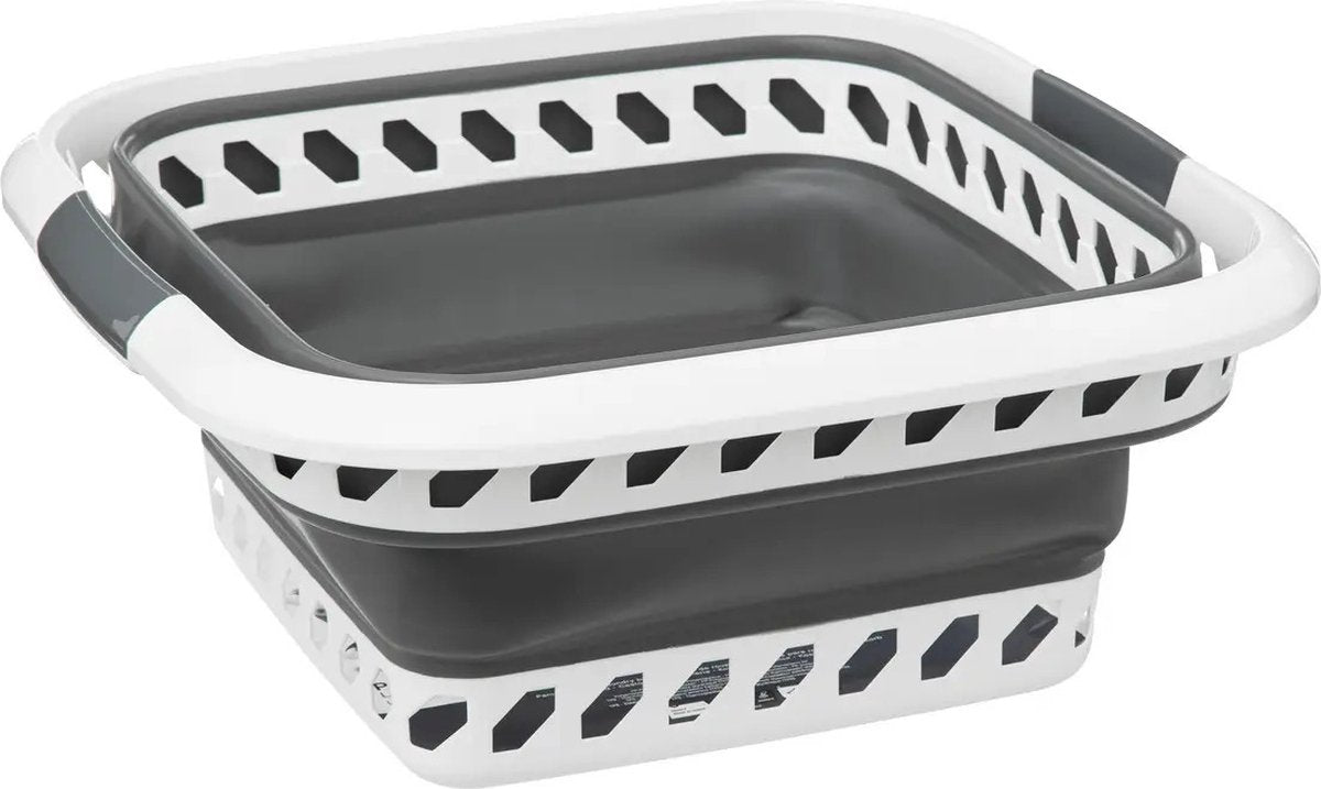 Panier à linge pliable avec poignées - plastique - 40L - gris/blanc