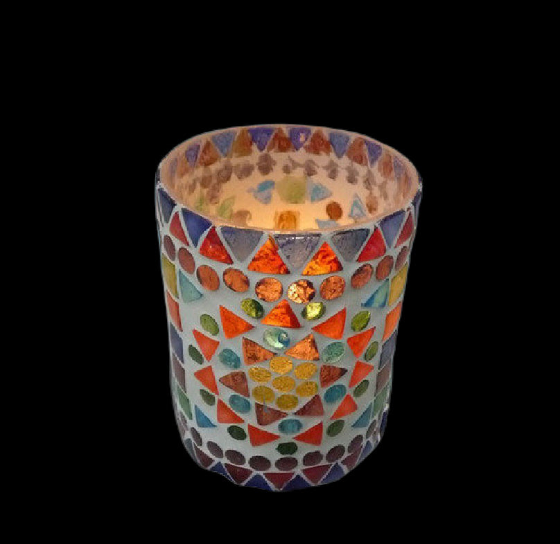Bougeoir intemporel avec mosaïque de différentes couleurs. Un véritable accroche-regard ! multicolore - ciment blanc mosaïque de verre hauteur :... En savoir plus